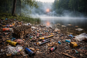 Vergiftiging: Stoffen zoals barium (voor groene vlammen), strontium (rood) en koper (blauw) lossen op in het water van de Madestein-plas. Dit is schadelijk voor de waterkwaliteit en giftig voor vissen en amfibieën.